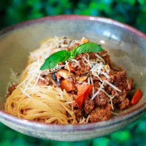 Bolonhesa de Novilho com tomate, cenoura e cogumelos